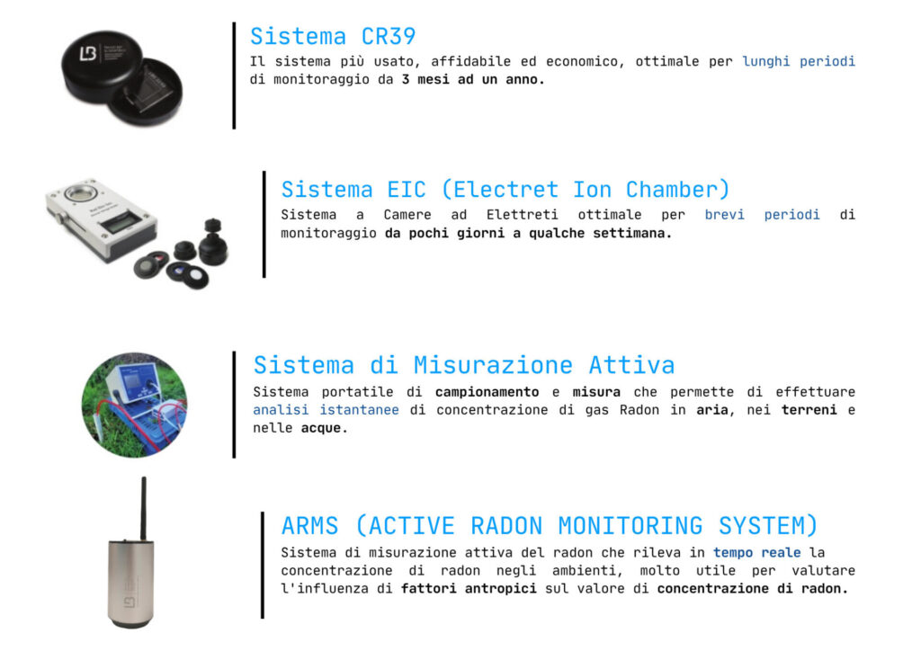 - Effettuare misure specifiche della concentrazione di gas radon nel suolo e nelle acque.